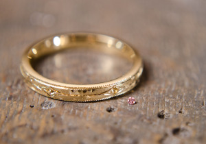 手彫り彫金(彫り柄はお任せ)・ピンクダイヤ
